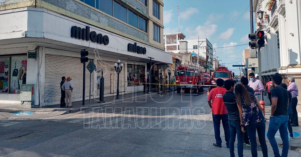 Tampico, Tamaulipas.- Momentos de pánico se vivieron en la parte superior de la tienda Milano ubicada en el corazón de Tampico, al registrarse un incendio en una clínica dental, incidente que de inmediato movilizó a personal de Bomberos.
