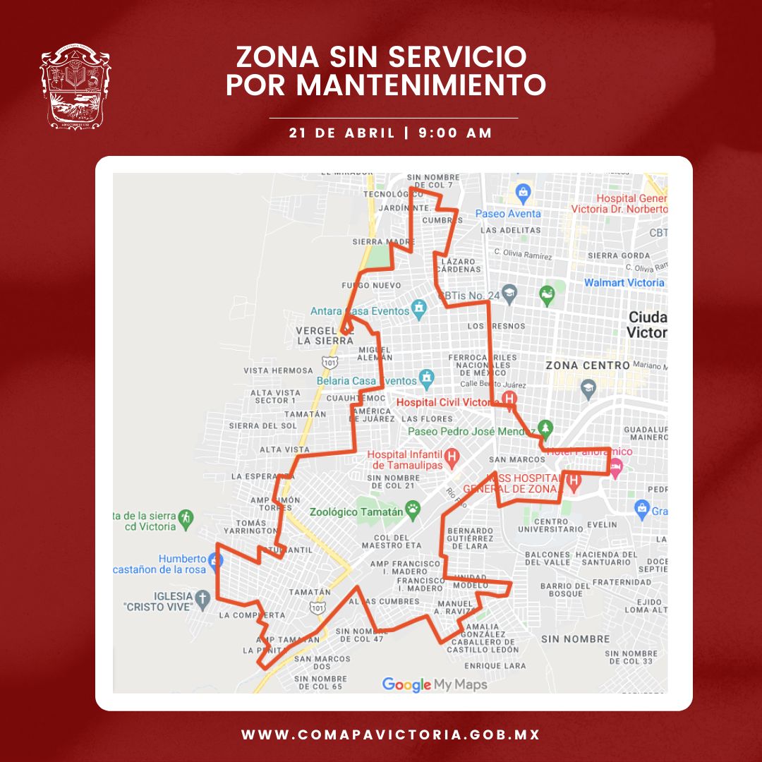 Por esta razón, la siguiente zona no contará con el servicio durante dichos trabajos.