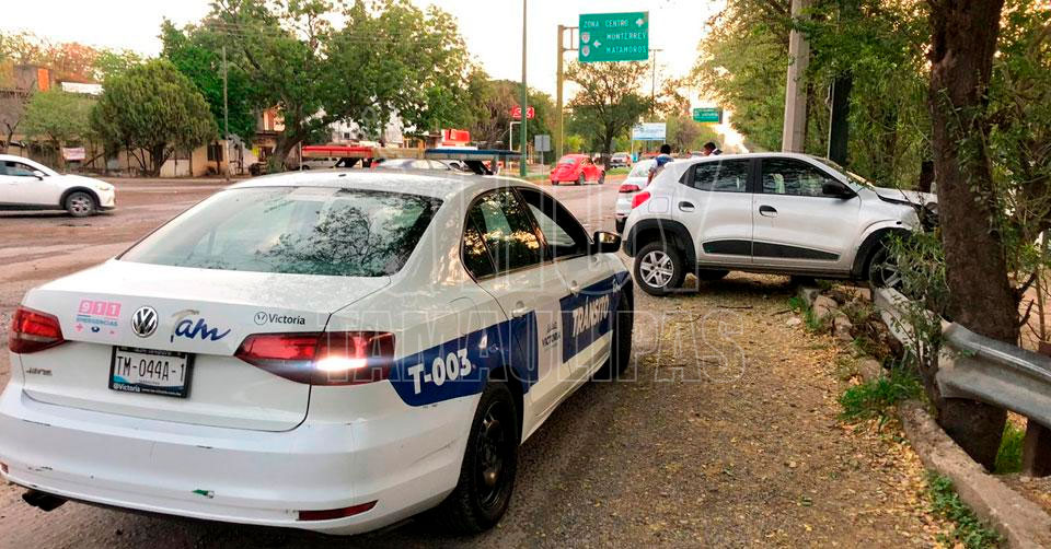 Ciudad Victoria, Tamaulipas. – Un conductor resultó con golpes leves esta mañana luego de chocar contra un árbol donde detuvo su trayecto, al perder el control en el Libramiento Emilio Portes Gil y Calzada General Luis Caballero en Ciudad Victoria.