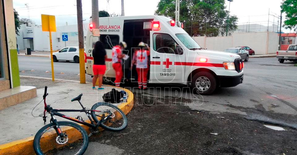 Conductora tumba a ciclista y lo lleva al hospital en Ciudad Victoria