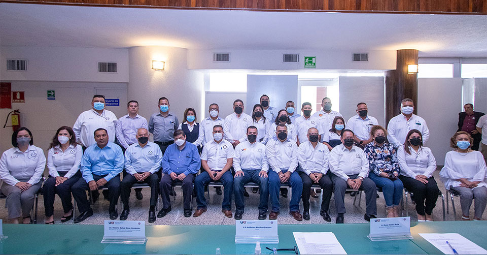 También estuvieron el Ing. Rafael Pichardo Torres, Secretario de Administración y el C. P. Franklin Huerta Castro, Secretario de Finanzas, entre otros funcionarios de la Universidad; y por parte del sindicato, Sergio Reta Flores, Secretario Estatal de Trabajos y Conflictos del SUTUAT; así como los secretarios de las secciones Norte, Centro, Sur y Mante del gremio sindical universitario.