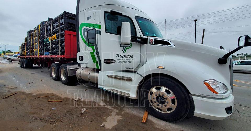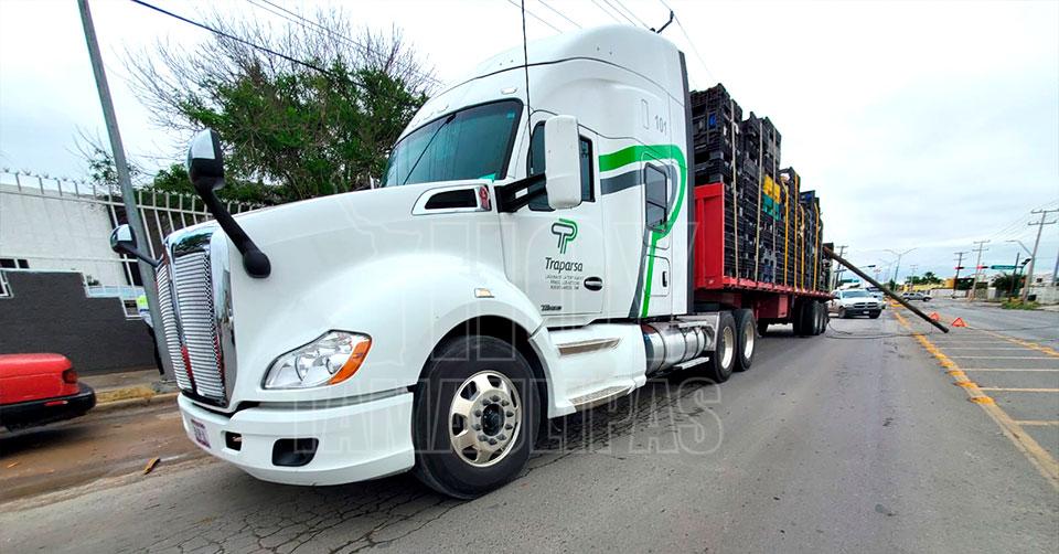 Derriba poste de madera con tráiler en Nuevo Laredo