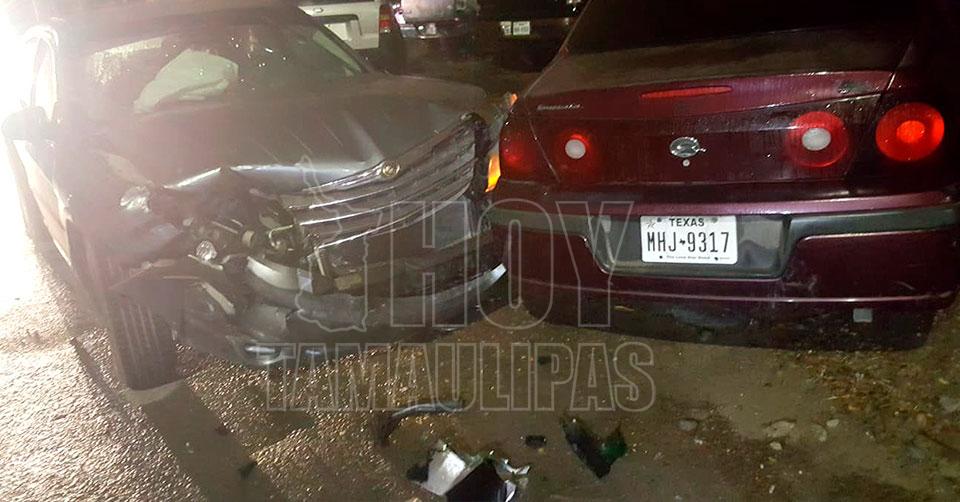 Nuevo Laredo, Tamaulipas.- En completo estado de ebriedad y creyéndose influyente, un conductor de automóvil se pasó una señal de alto en un crucero de la colonia Buenavista, en Nuevo Laredo, causando daños materiales a dos vehículos, uno de ellos estacionado.