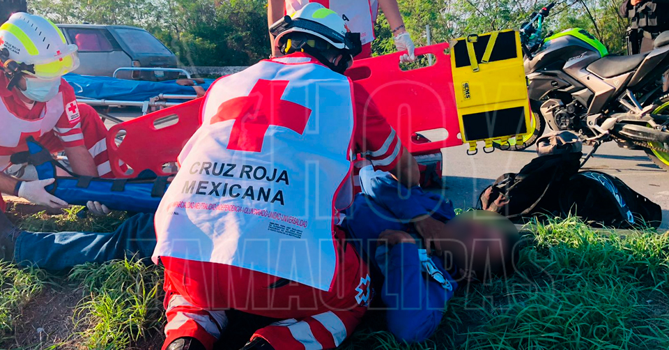 Motociclista choca contra camioneta y derrapa en Ciudad Victoria