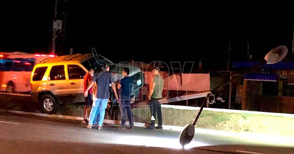 El mismo individuo narró que una mujer se le atravesó de manera repentina, y para evitar atropellarla volanteo trepando al camellón, donde derribó la lámpara de alumbrado que quedó obstaculizando un carril de circulación.