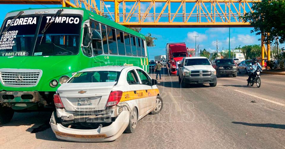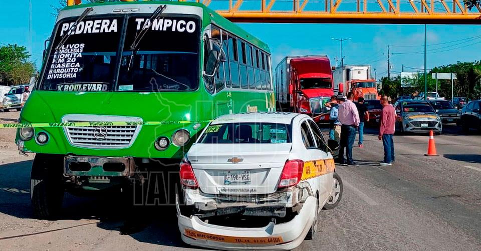 Altamira, Tamaulipas. - Cinco personas lesionadas, cuatro de ellas mujeres y una de ellas embarazada que requirió hospitalización, así como cuantiosos daños materiales, fue el saldo que dejó un aparatoso choque múltiple en el que se vio involucrado un autobús que presuntamente tuvo una falla mecánica al quedarse sin frenos.