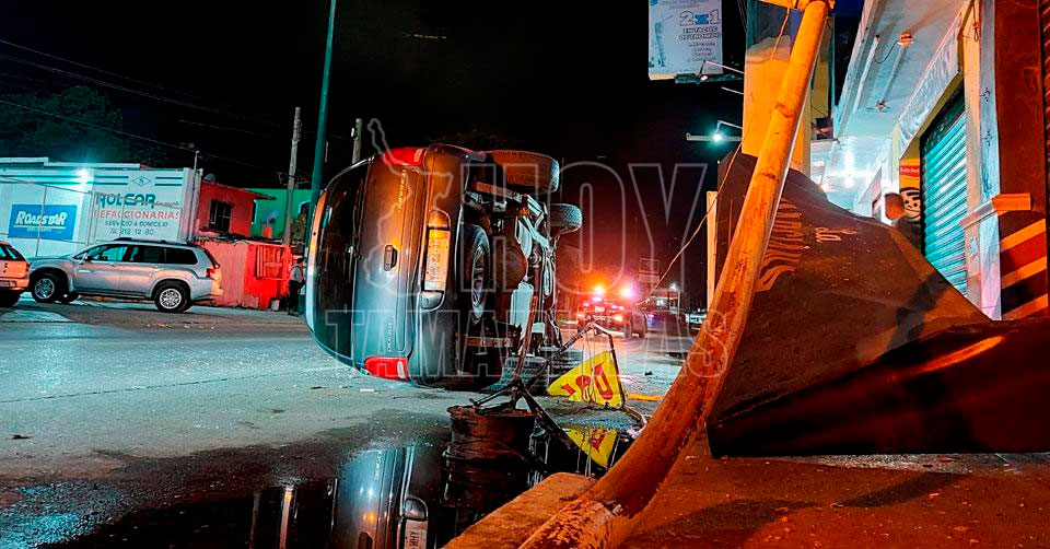 Tampico, Tamaulipas. - Una camioneta que era conducida en aparente exceso de velocidad terminó volcada esta madrugada en Tampico, resultando con lesiones una mujer que tuvo que ser trasladada de urgencia a un hospital de la localidad.