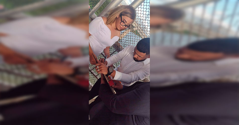 Reynosa, Tamaulipas.- En redes sociales circularon las fotos de una pareja de enamorados que contrajeron matrimonio a mitad del puente internacional Reynosa-Hidalgo.