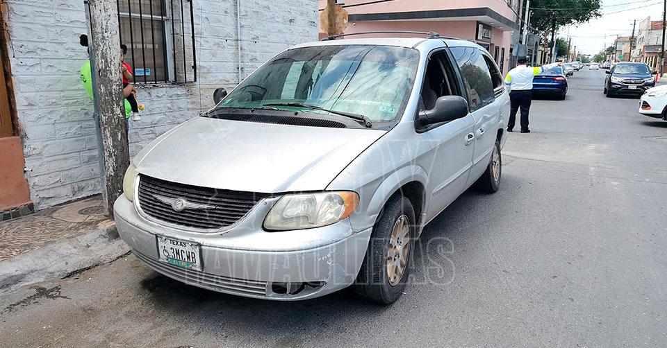 Este percance se reportó en la intersección de Juárez y Mina, y de este fue responsable Guillermo, de 24 años, quien conducía una camioneta Chrysler Town & Country 2003