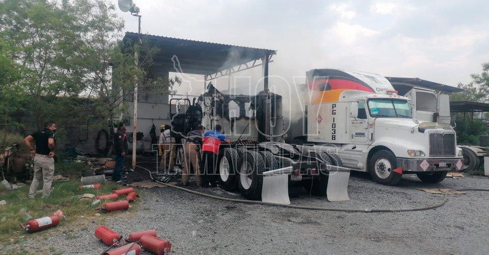 Incendio de tráiler en gasera moviliza a cuerpos de emergencia en Ciudad Victoria