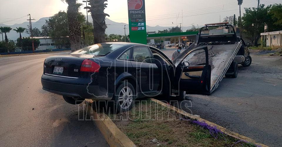 Los hechos acontecieron cuando la conductora del vehículo Audi A6 circulaba sobre la calle República de México de sur a norte, y al tratar de incorporarse a la avenida de La Unidad perdió el control, proyectándose contra el camellón divisor de carriles.