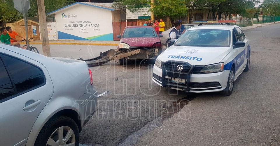 Ciudad Victoria, Tamaulipas.- Un jovencito dejó cuantiosos daños materiales a tres vehículos, luego de omitir un señalamiento de alto en la colonia Américo Villarreal de Ciudad Victoria.
