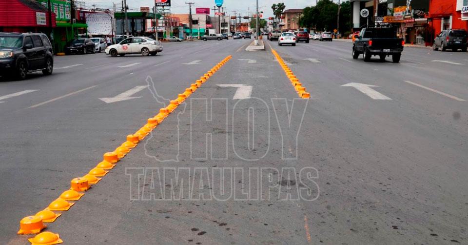 Matamoros, Tamaulipas. - Debido a que no se respetaban algunos carriles sobre la Avenida Sexta, es que la Dirección de Tránsito tuvo que instalar “tortugas” amarillas para delimitar los mismos y así tratar de hacer conciencia entre los automovilistas en cuanto al respeto de dichos espacios, informó el director de ordenamiento vial Julián González.