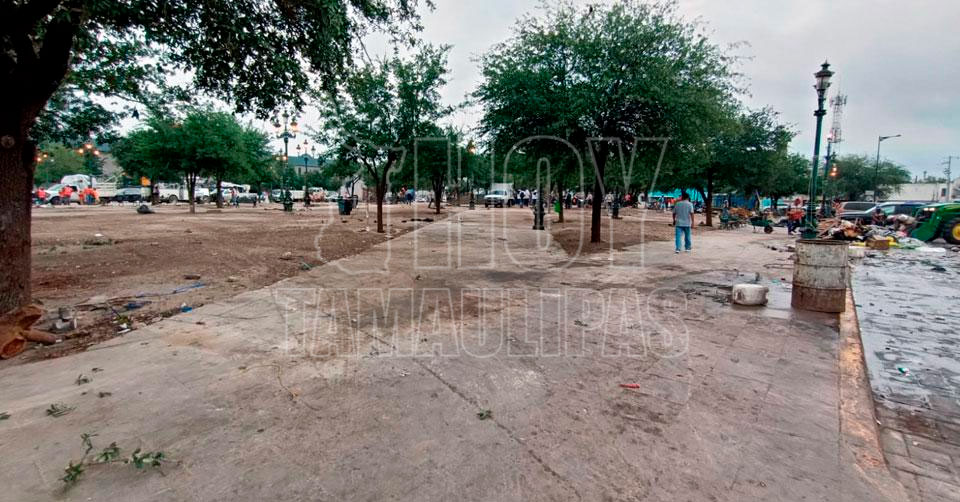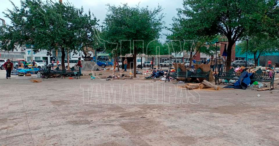 Reynosa, Tamaulipas. - Luego de poco más de un año de que los migrantes ocuparon la plaza La República en Reynosa, está amaneció totalmente desocupada.
