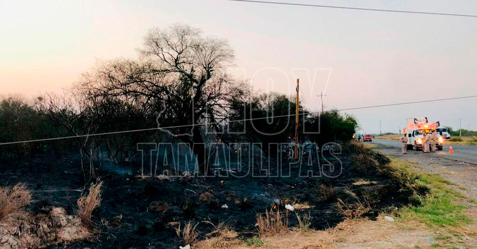 El derribo de los postes de luz provocó un incendio de pastizal y fue necesaria la presencia de elementos de Protección Civil y Bomberos.