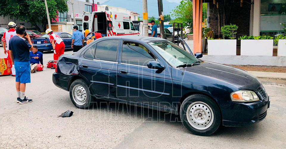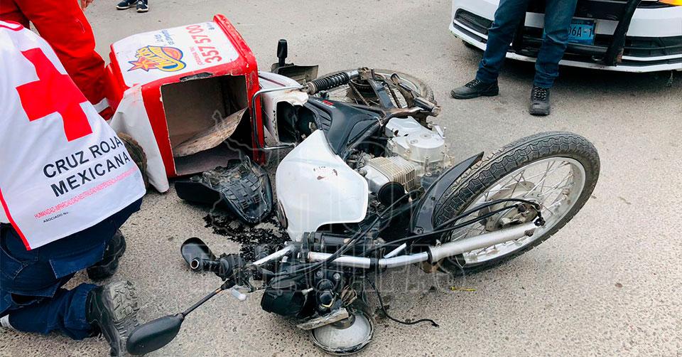 Ciudad Victoria, Tamaulipas. – Un motociclista repartidor de pollo frito resultó lesionado esta tarde, luego de impactarse contra un automóvil cuyo conductor se pasó una señal de alto, en el 12 y 13 Veracruz.