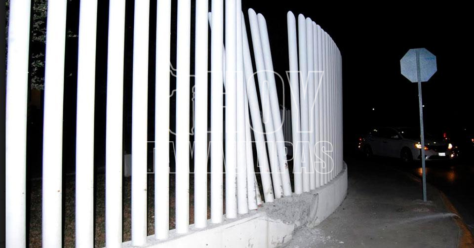Nuevo Laredo, Tamaulipas. - Dos hombres que viajaban en un automóvil resultaron con golpes, después de que volcaron en la unidad en la que iban tras chocar contra la barda perimetral de concreto y forja del edificio de los juzgados penales en Nuevo Laredo.