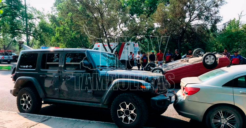 Ciudad Victoria, Tamaulipas. - Una persona lesionada y cuantiosos daños materiales, dejó como saldo un choque con volcadura registrado esta mañana en el centro de Ciudad Victoria.