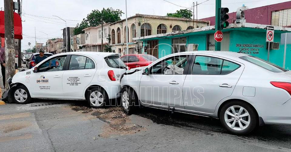 Nuevo Laredo, Tamaulipas. - Una mujer no respetó la luz roja de un semáforo y con ello provocó un fuerte accidente vehicular en un crucero de la colonia Juárez, en Nuevo Laredo.