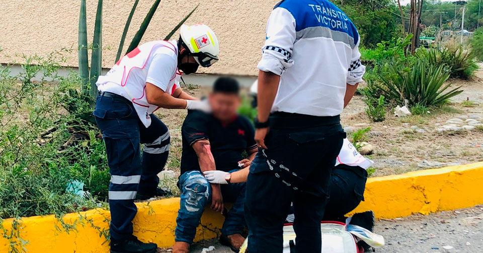 Ciudad Victoria, Tamaulipas. – Un motociclista resultó lesionado luego de que el conductor de un coche presuntamente se le cerró y este terminó derrapando en la bajada del planetario de Ciudad Victoria.