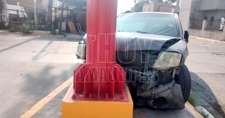 Nuevo Laredo, Tamaulipas.- Luego de chocar contra la base de un anuncio de una tienda de conveniencia, una persona dejó abandonada la camioneta que conducía para no pagar los daños que causó.