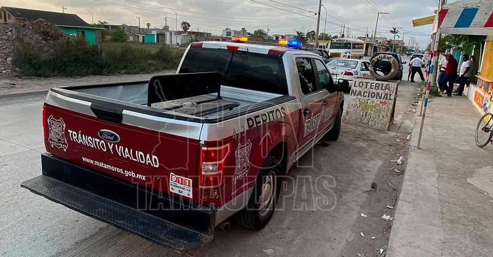Matamoros, Tamaulipas. - Los pasajeros de un taxi salieron lesionados luego de que colisionó contra una camioneta conducida por una mujer de la Policía Estatal que andaba de civil.