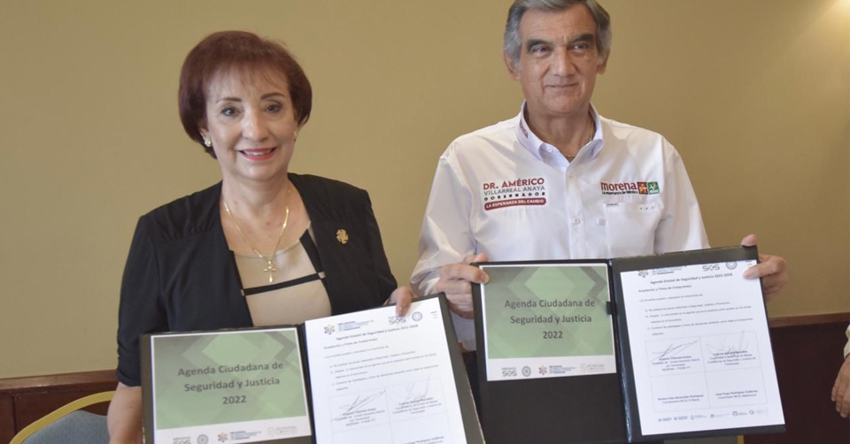 Al término del encuentro firmó la propuesta de la Agenda Ciudadana de Seguridad y Justicia 2022-2028 con la Red Estatal de Mesas Ciudadanas de Seguridad en el estado, la cual fue entregada por Yolanda Barrera González, de la Mesa de Seguridad del Mante.