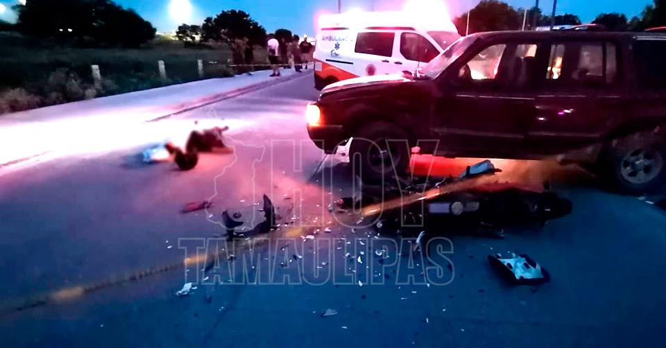Reynosa, Tamaulipas. - Un joven motociclista perdió la vida anoche tras impactarse contra una camioneta luego de realizar una maniobra no permitida en la Avenida Los Pinos, a la altura de la entrada a la colonia Villa Florida en Reynosa.