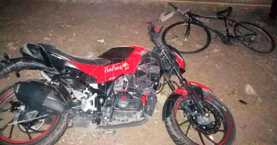 Ciudad Victoria, Tamaulipas. - El conductor de una motocicleta terminó gravemente lesionado la noche de ayer martes en el Libramiento Naciones Unidas, a la altura de la entrada a la carretera Interejidal, luego de embestir a un ebrio ciclista que se le atravesó en el camino.