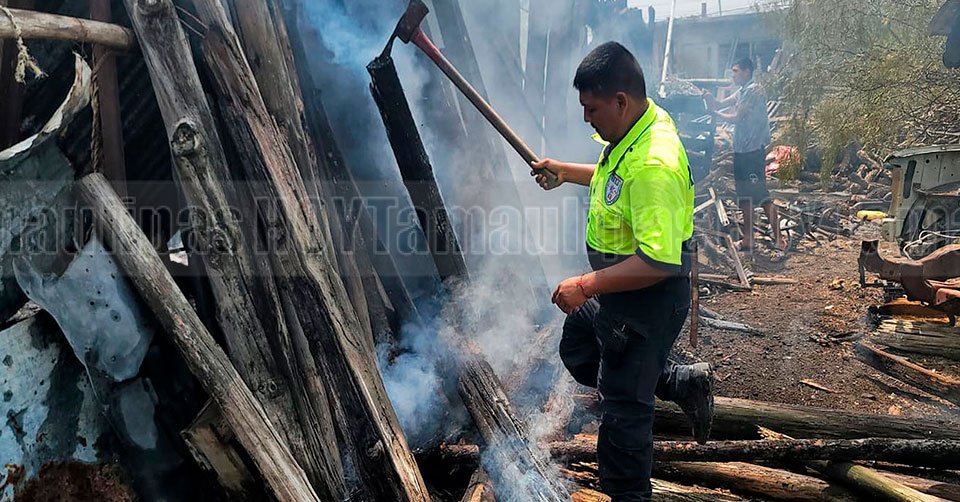 Nuevo Laredo, Tamaulipas.- Un pequeño almacén de madera registró un incendio en su interior por causas aún desconocidas. La rápida actuación de los elementos de Bomberos evitó que el fuego se descontrolara y siguiera su paso a domicilios contiguos.