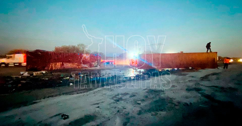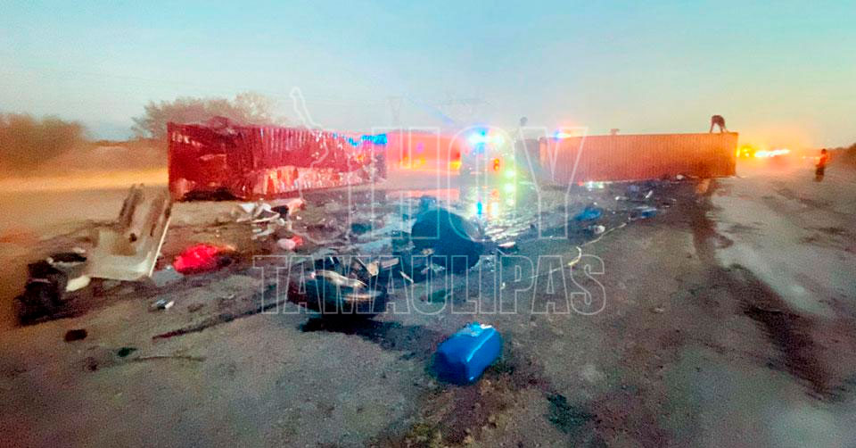 Ciudad Victoria, Tamaulipas. – El chofer de un tractocamión perdió la vida al instante, luego de chocar de manera frontal contra un contenedor que se le zafó a otra pesada unidad en el kilómetro 60 de la carretera Zaragoza-Victoria.