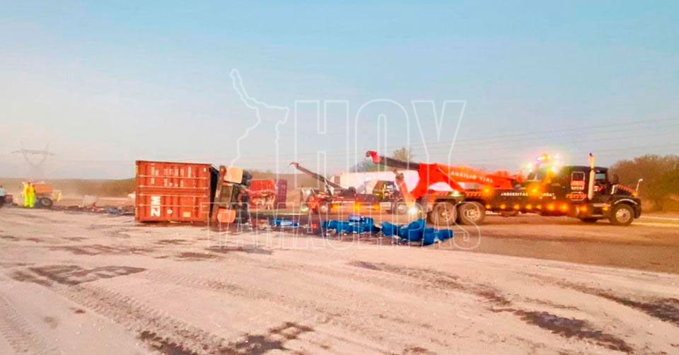 El ahora occiso conducía un tractocamión doble articulado con contenedores que transportaban electrodomésticos, los cuales quedaron volcados sobre la cinta asfáltica.