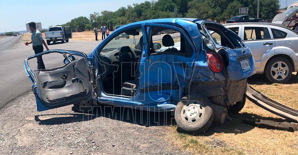 Ciudad Victoria, Tamaulipas.- Una persona salió proyectada de un vehículo luego de ser chocado por una camioneta en el kilómetro 57 de la carretera Victoria - Zaragoza.