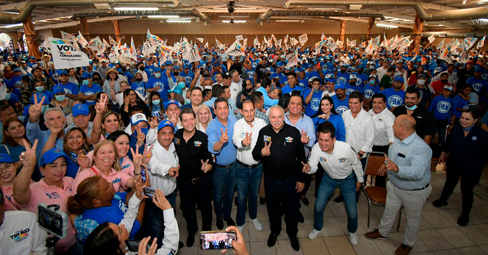 El otro fue el gobernador Francisco García Cabeza de Vaca, quien asistió a la toma de protesta de los defensores del voto del candidato de la Alianza César “Truko” Verástegui, en otro evento multitudinario celebrado en la quinta Blayser.