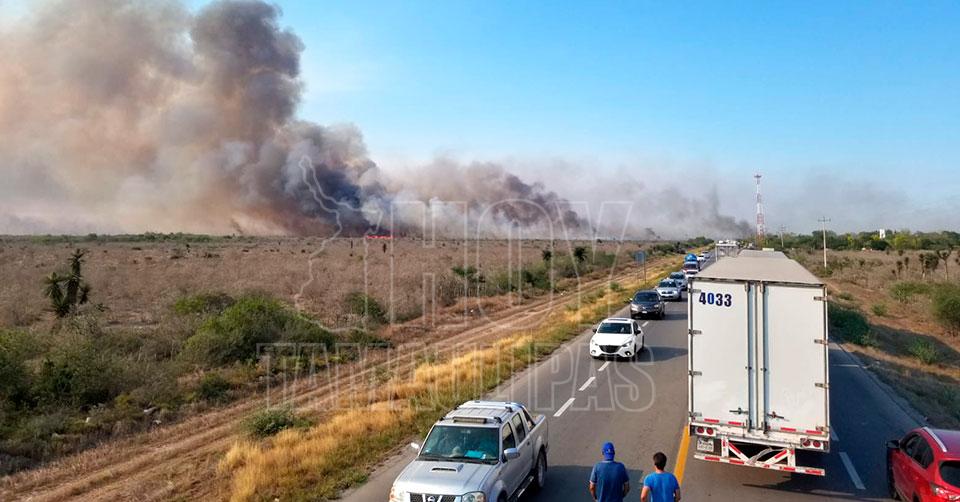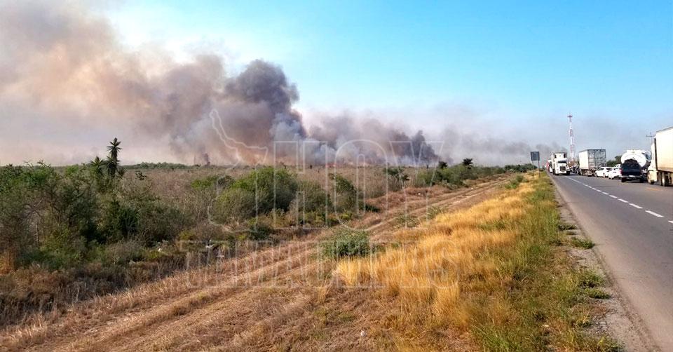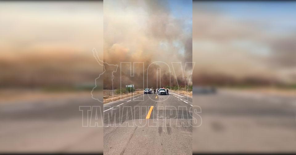 Ciudad Victoria, Matamoros.- La carretera Victoria-Matamoros permanece cerrada por un fuerte incendio de zacatal que impide visibilidad a automovilistas, por lo que autoridades decidieron cerrar para evitar alguna tragedia.