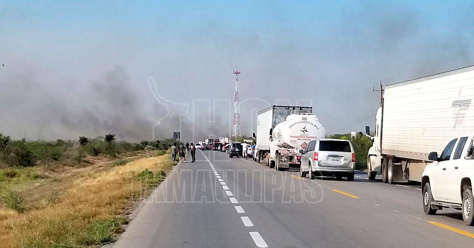 Cierran la Carretera Victoria-Matamoros por voraz incendio