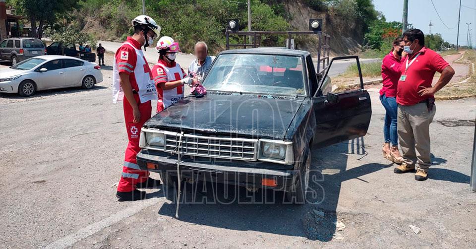 Al momento del choque la mujer que viajaba de copiloto con el abuelito resultó lesionada, ya que tiene cuatro meses de embarazo, por lo que fue valorada por paramédicos de la Cruz Roja.