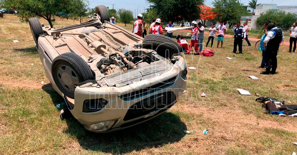 Ciudad Victoria, Tamaulipas. – El conductor de un automóvil resultó lesionado luego de volcar en el Libramiento Emilio Portes Gil, a la altura de Naciones Unidas en Ciudad Victoria.