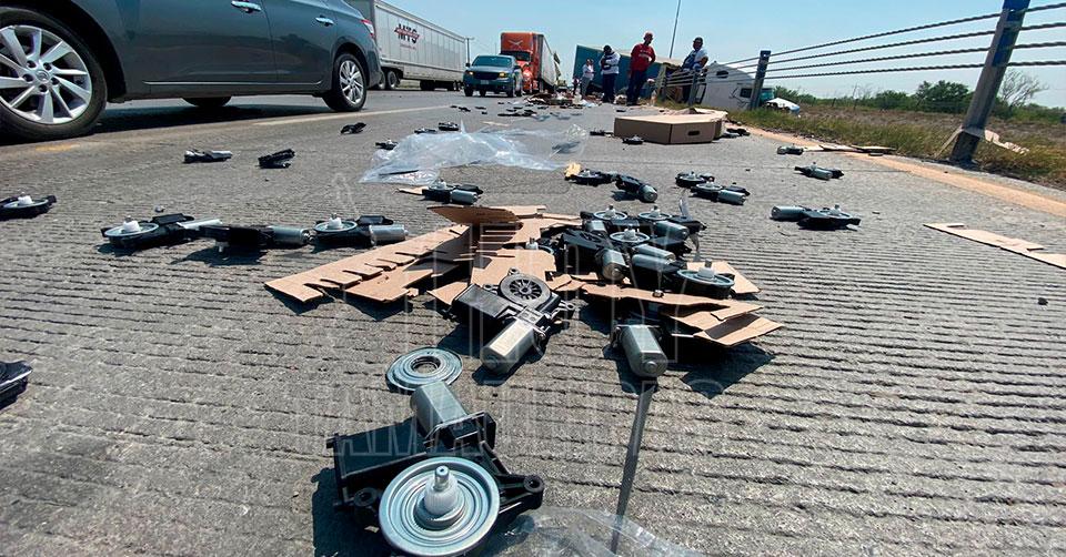 Se informó que Enrique, quien llevaba una carga de costosos elevadores mecánicos para vehículo Tesla, circulaba de sur a norte por el Libramiento Mex II.
