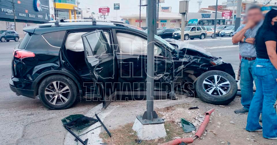 Peritos de Tránsito que acudieron a deslindar responsabilidades en el percance, determinaron que la colisión fue provocada por el conductor de la camioneta Toyota RAV 4 color negro con placas de San Luis Potosí, quien al circular rumbo al norte intentó virar a su izquierda para ingresar a una zona residencial, sin percatarse que el semáforo estaba en luz ámbar.