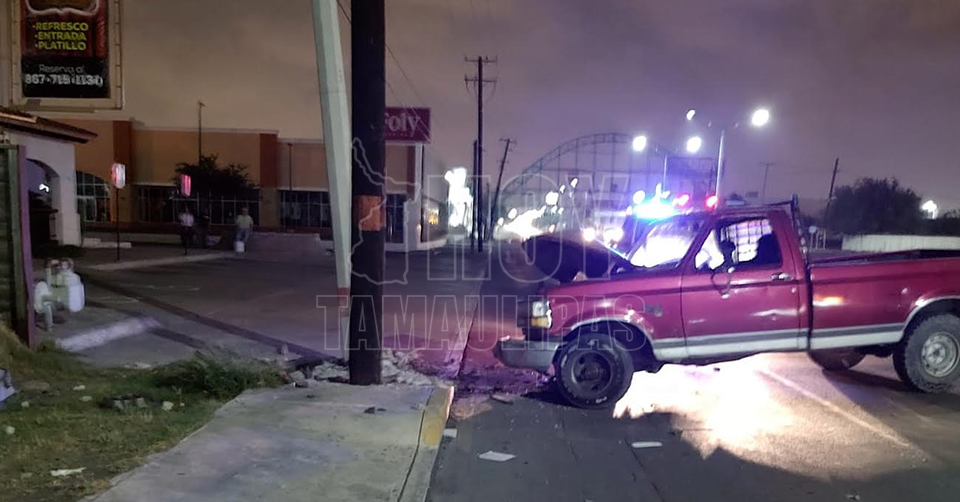 Nuevo Laredo, Tamaulipas.— Tras estrellarse contra un poste de concreto de la Comisión Federal de Electricidad (CFE), una persona abandonó su camioneta para no pagar los daños provocados al objeto fijo.