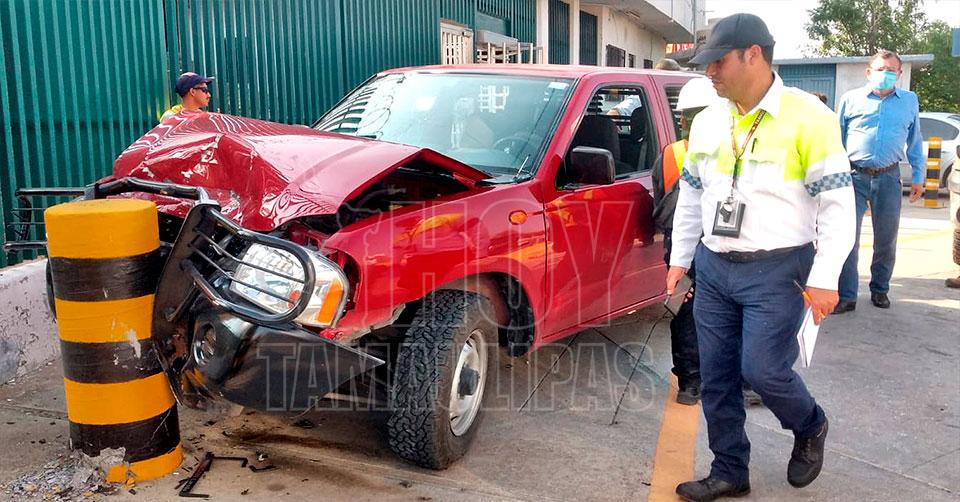 Nuevo Laredo, Tamaulipas.- Un hombre de la tercera edad resultó herido al chocar la camioneta que manejaba contra un tubo de contención afuera de las instalaciones de la empresa Kansas City Southern de Mexico, en Nuevo Laredo.
