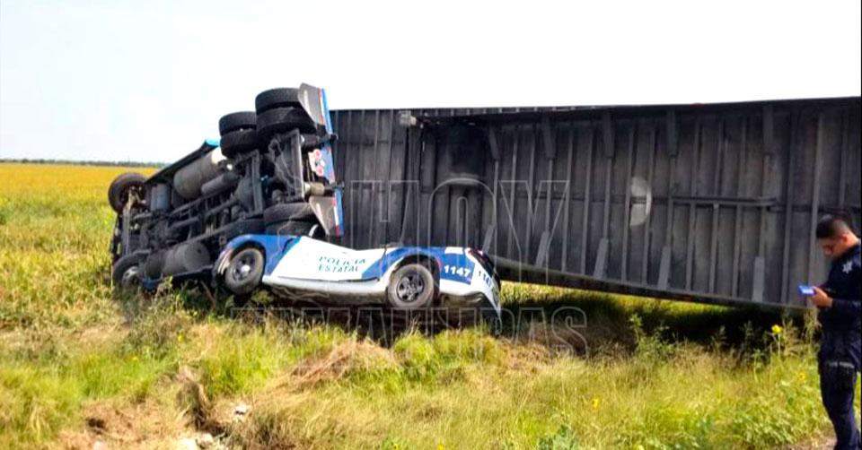 El aparatoso accidente, que causó golpes leves en dos agentes y a uno le fracturó las costillas, se registró en el Libramiento Francisco Villa del referido municipio tamaulipeco.