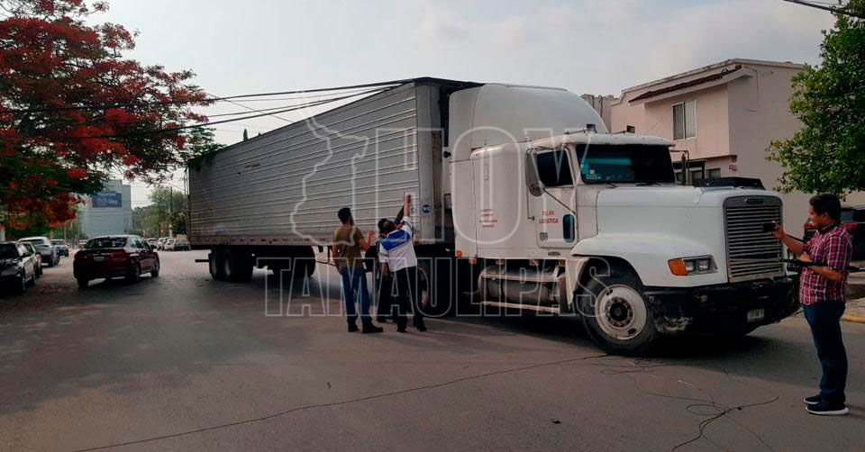 Trailero derriba postes y deja sin internet varias cuadras del centro de Victoria