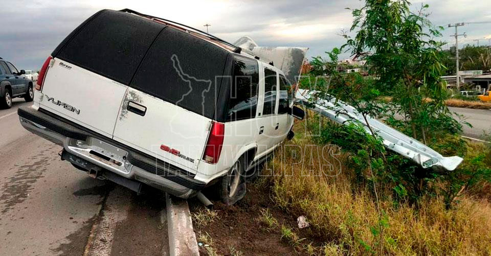 La unidad abandonada era una GMC Yukon, la cual sufrió daños materiales en el área del motor, lo que impidió a su chofer llevársela.