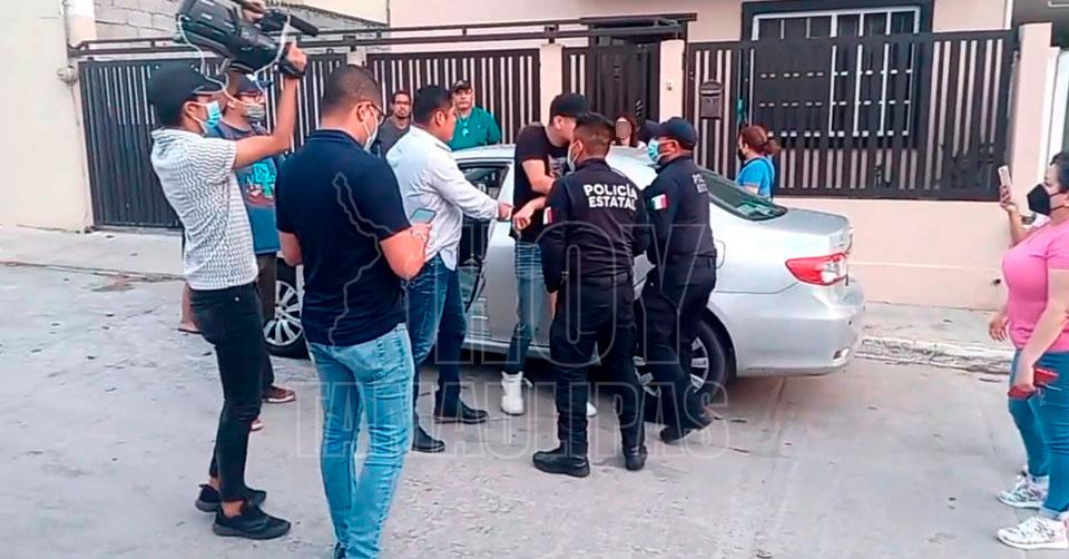 El sujeto por la fuerza trató de llevarse al perro, acción que le fue impedida por el personal de Protección Animal y los elementos de Fuerza Tamaulipas, quienes entre insultos y jaloneos finalmente lo sometieron y se lo llevaron detenido en una patrulla.