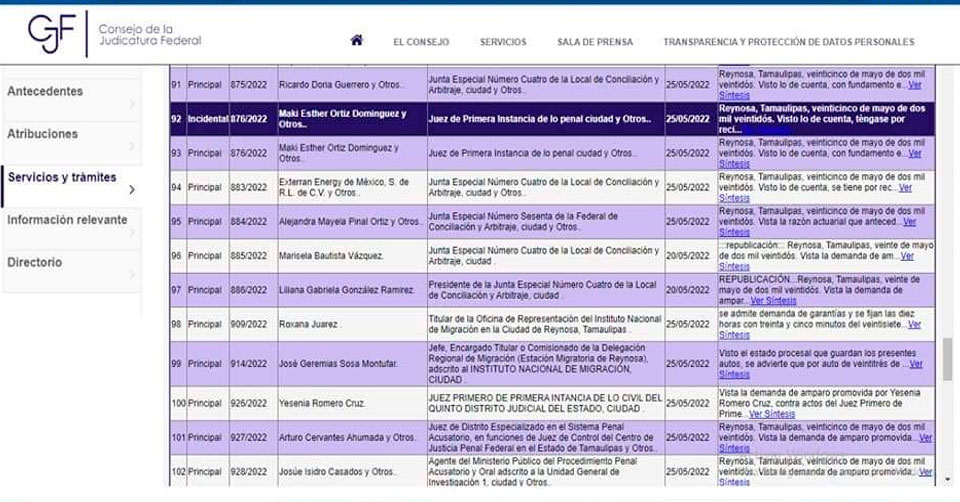 Reynosa, Tamaulipas. - La ex alcaldesa de Reynosa, Maki Ortiz Domínguez, metió una solicitud de amparo ayer miércoles 25 de mayo, según consta en el expediente 876/2022 con fecha del acuerdo 25/05/2022, sin especificarse los motivos de este.
