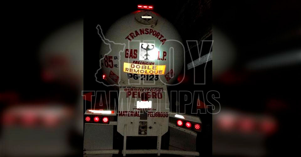 Jaumave, Tamaulipas. - La volcadura de un contenedor de gas LP ocasionó durante la madrugada de este viernes la movilización de los distintos cuerpos de auxilio en la carretera Tula-Victoria.