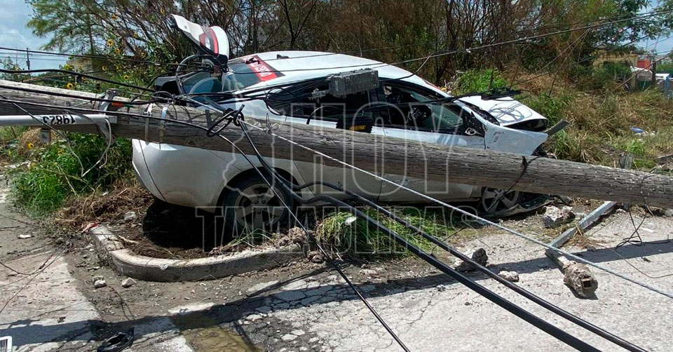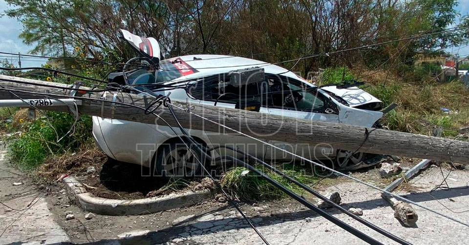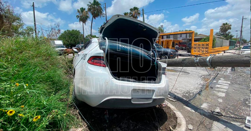 Matamoros, Tamaulipas.- Un fuerte accidente vial ocurrió en la colonia Tecnológico y dejó un saldo de una taxista lesionado y daños valorados en miles de pesos, además de un sector sin energía eléctrica.