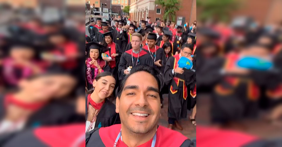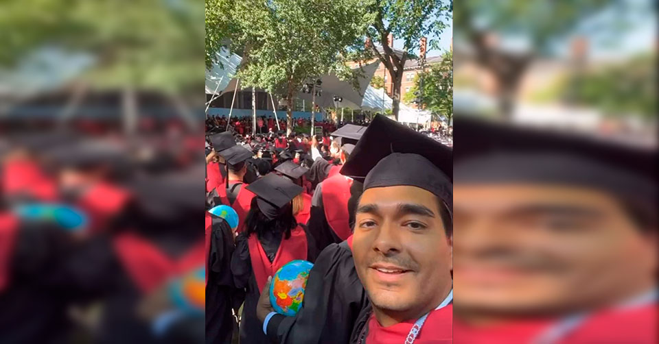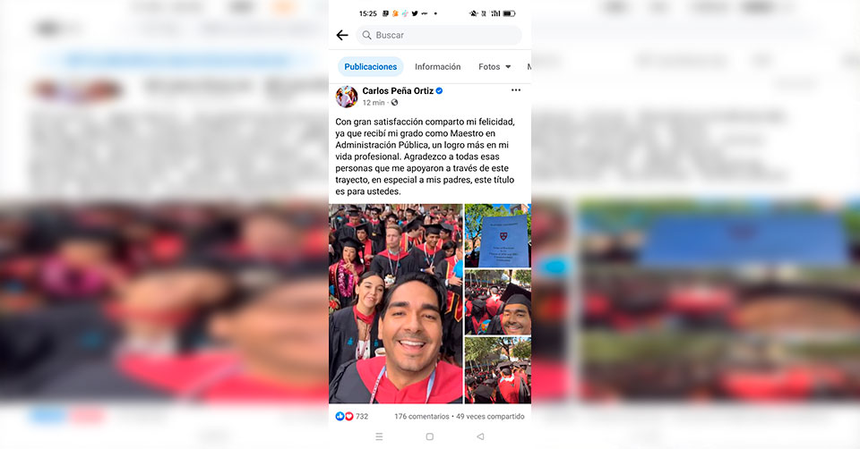 Lo anterior se comprobó luego de que el alcalde con licencia, subió unas fotos de su graduación, en donde aparece en instalaciones de dicha universidad en Massachusetts.
